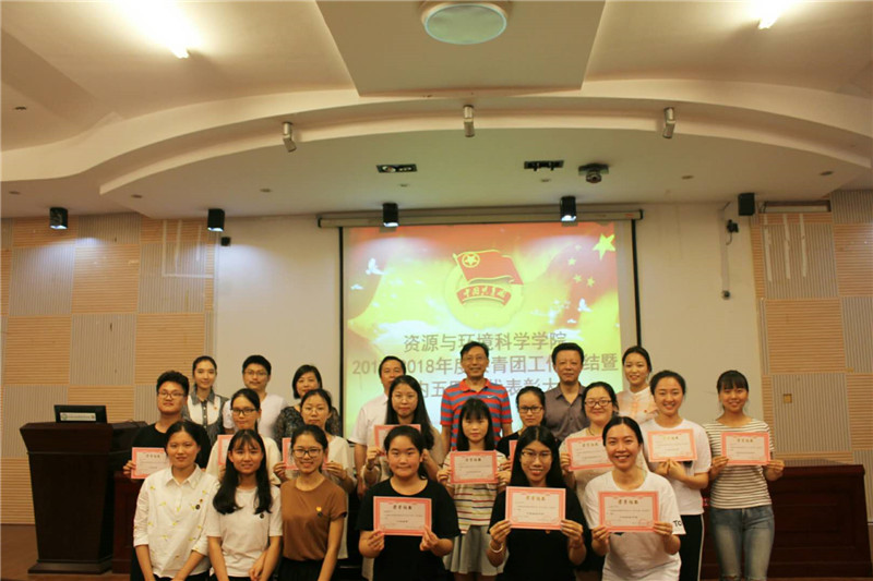 5月14日下午,资源与环境科学公司2017-2018共青团工作总结暨团内五四表彰大会于公司301报告厅顺利开展。公司党委书记彭才华、副经理谭长银、副经理胡雪松、公司党委副书记陈媛、2017级人文地理与城乡规划班导师陈征及学工办老师出席本次会议。