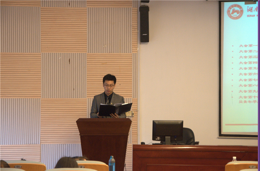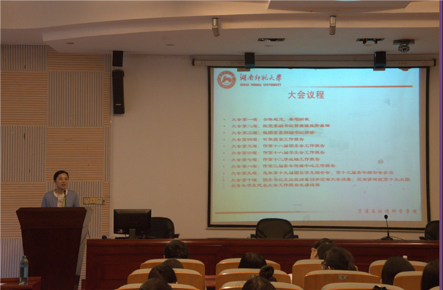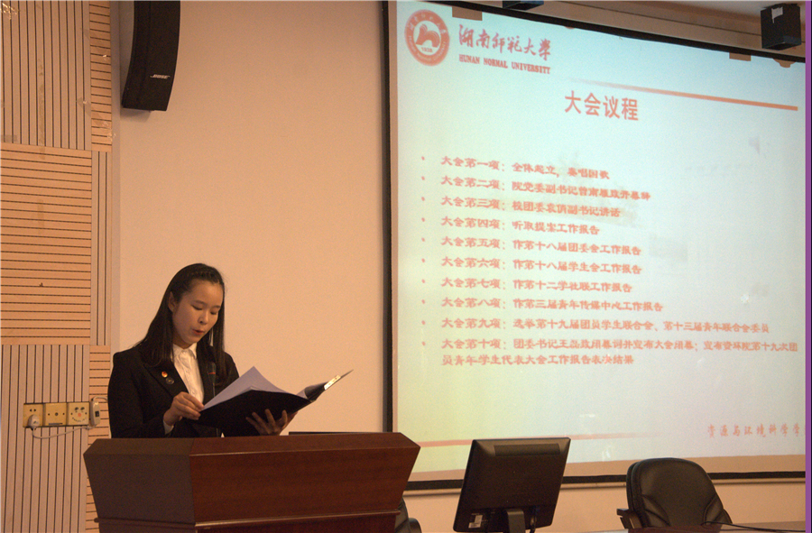 杨惠君宣布大会开始并要求全体起立合唱中华人民共和国国歌。接着,公司团委副书记朱琦至、王圆分别作2015-2016学年度团委工作总结报告并浅谈了工作感受,院员工会主席齐麟、院学社联主席高雅、院青传主任罗俐敏分别作了2015-2016学年度有关部门工作报告,同时也对新一届主席团提出了殷切的希望。随后,朱琦至宣布第十九届团学联合会、第十三届青年联合会换届竞职演讲开始,新一届68位候选人在台上展示了自己的特色,也提出了自己当选后要对部门的规划等等问题。最后,院团委书记王磊作总结讲话。他首先对上一届主席团给予了充分的肯定,并对候选人表示诚挚的祝贺,希望他们能本着“服务同学,奉献自身”的宗旨,怀着强烈的责任心踏踏实实地开展工作,把工作推向新的高度。