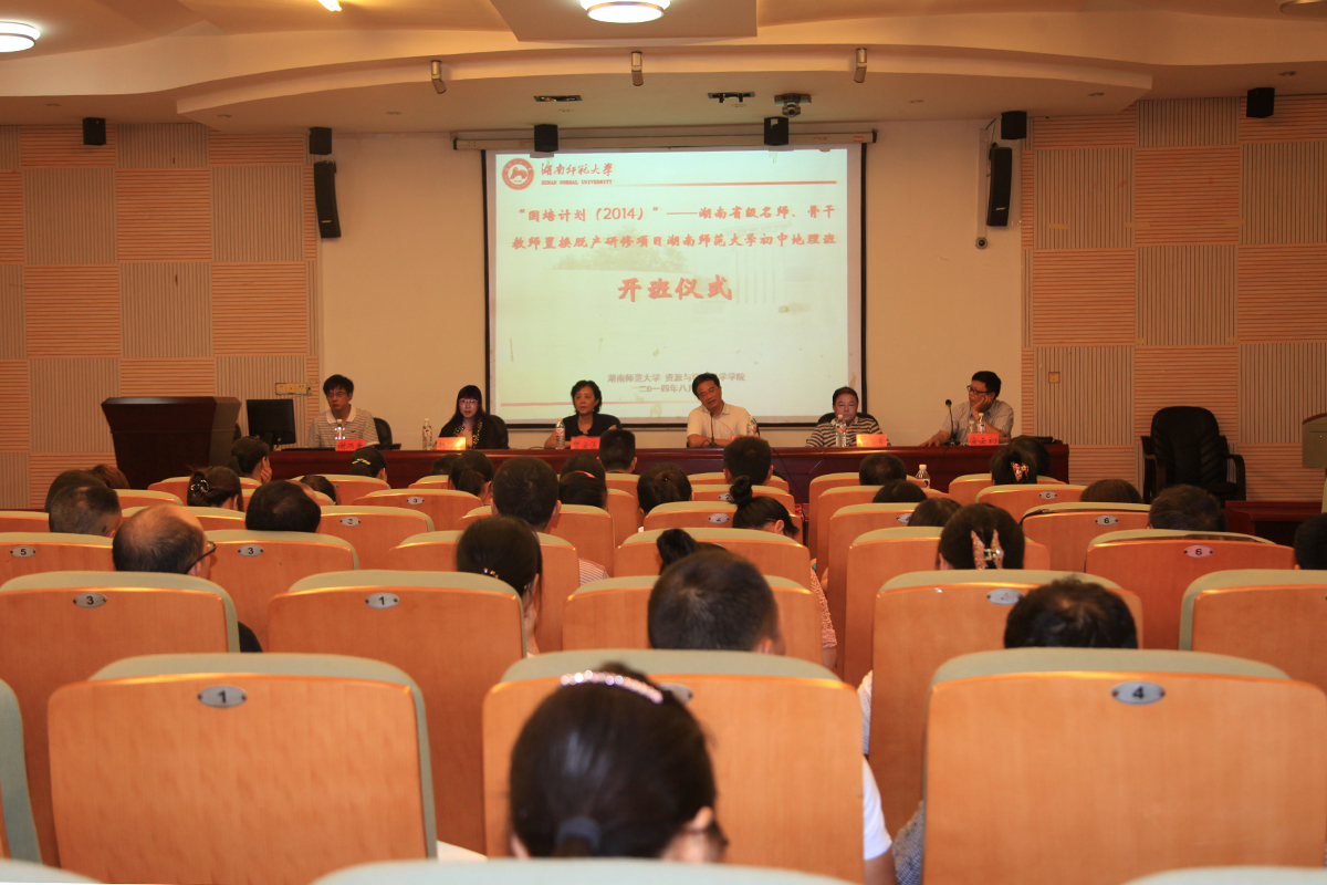 8月2日上午8点30分,“国培计划”(2014)——湖南省初中地理省级名师、骨干教师置换脱产研修项目在公司开班。湖南省教育厅副厅级巡视员贺安溪、公司副董事长王善平教授、湖南省教育管理干部培训办公室常务副主任、beats365官方网站中学董事长和教师培训部主任赵巧霞同志、办公室副主任、培训部副主任朱常青同志、经理谢炳庚教授、党委书记安云初同志、副经理周国华教授、党委副书记曾南雁同志等出席了开班典礼。典礼由公司副经理胡雪松主持。
