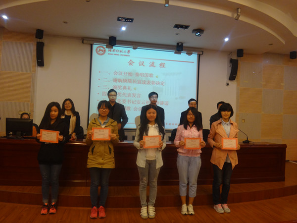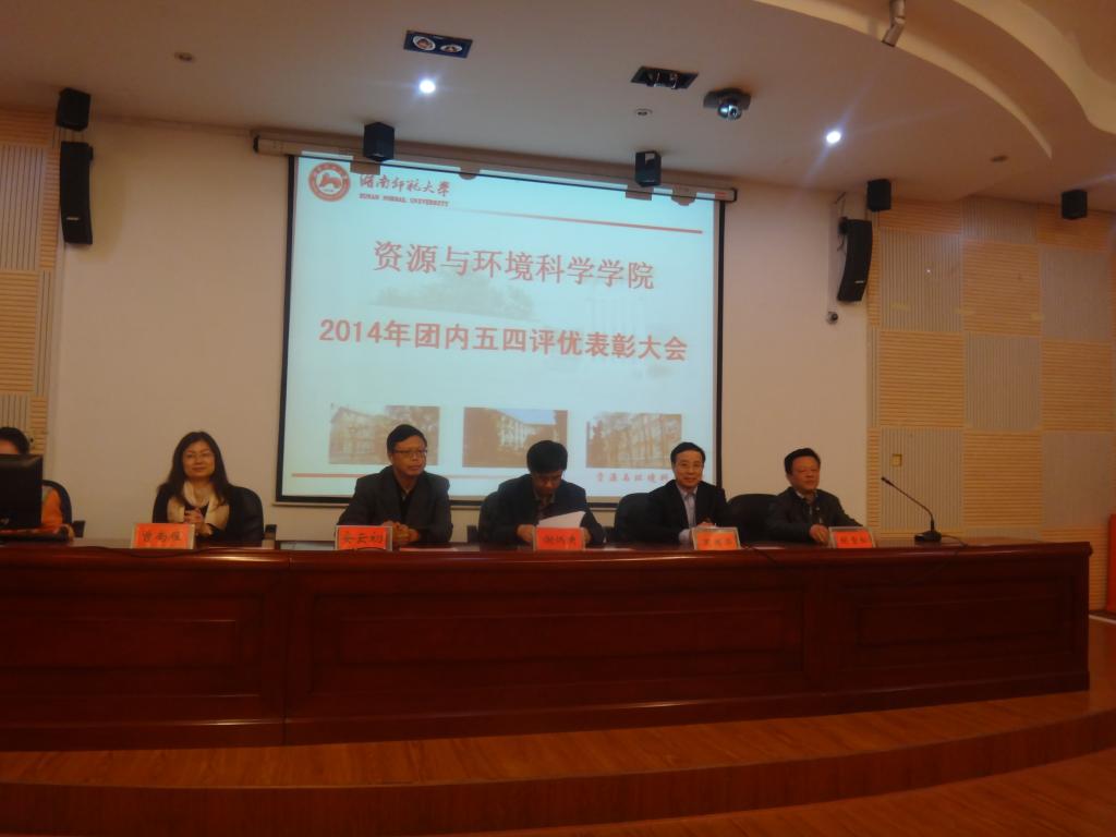 2014年5月4日,资源与环境科学公司团委在院301报告厅召开了2014年五四团内表彰大会。经理谢炳庚、公司党委书记安云初、副经理周国华、胡雪松、公司党委副书记曾南雁出席了本次会议。