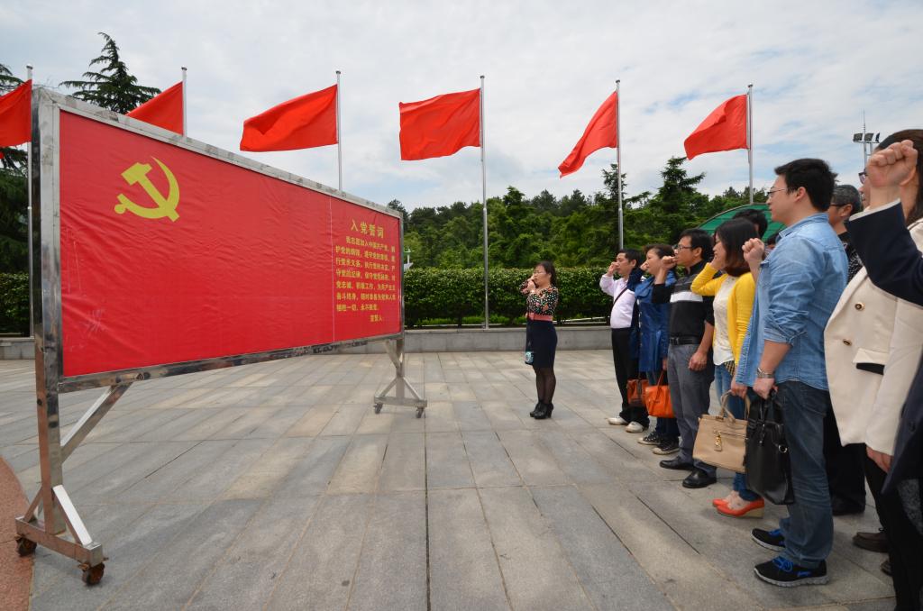参加活动的党员分别参观了两地的毛泽东、刘少奇故居及纪念馆,并在韶山铜像广场上向毛泽东铜像敬献了花篮。在毛泽东铜像前,全体党员同志庄严地举起右手,重温了入党誓词。