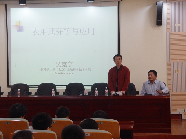 中国地质大学土地科学技术公司吴克宁教授来公司讲座,公司副经理秦建新教授主持讲座。