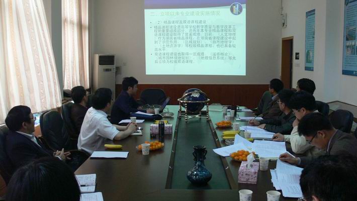2011年5月5号,湖南省高等公司特色专业中期建设情况评估会在公司召开,公司地理科学和资源环境与城乡规划两个省级特色专业接受了专家的中期评估。湖南大学的王良健教授、湖南科技大学的张勇教授、湖南城市公司的汤放华教授以及公司经理谢炳庚教授、党委书记安云初副教授、副经理周国华教授、土地管理系系主任毛德华教授等参加了评估会。