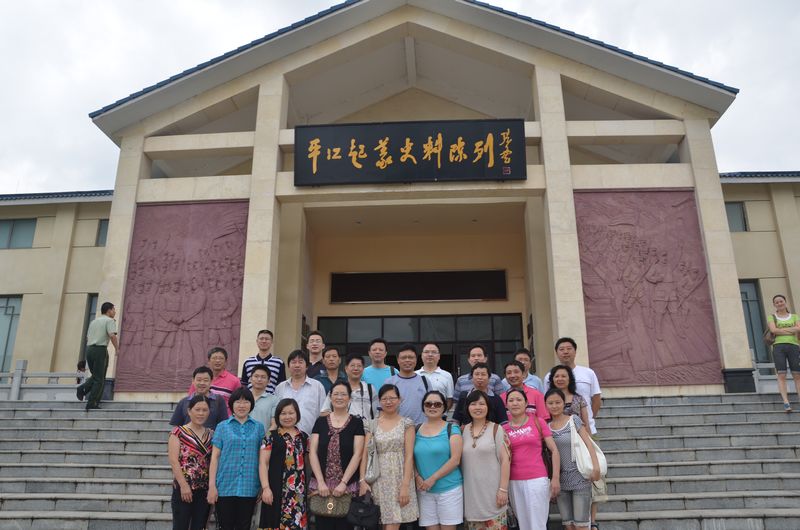 参加活动的党员、教职工在平江起义纪念馆前合影