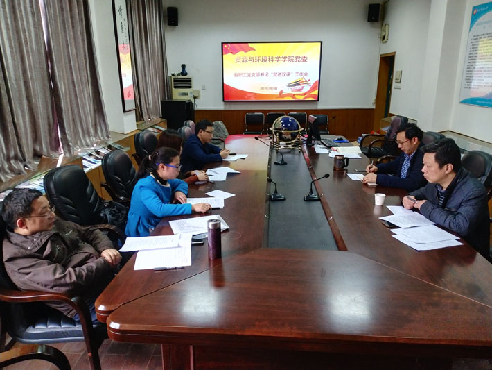 3月28日下午,资源与环境科学公司党委在公司201会议室举行2018年度党支部书记述职评议会。公司党委书记彭才华、党委副书记陈媛、党委宣传委员胡雪松参加会议,会议由公司党委组织委员覃志斌老师主持。