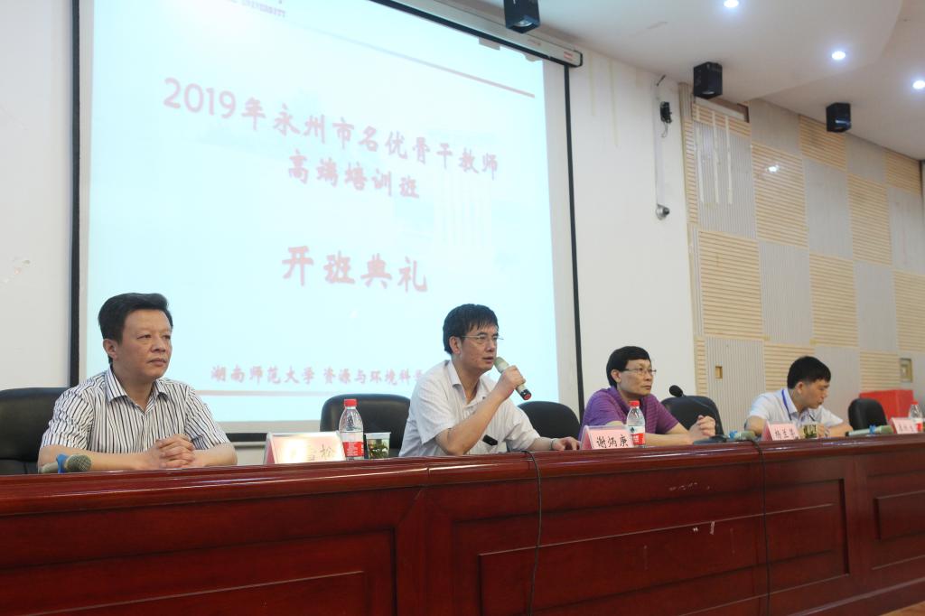 7月14日上午8:30,2019年永州市名优骨干教师高端培训班在公司301报告厅举行隆重的开班典礼。永州市教育局党组成员、主任督学杨兰荣,永州市教师发展中心支部书记秦秋生等出席了典礼。典礼由副经理胡雪松主持。