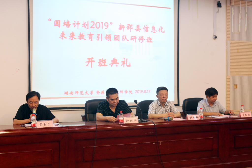8月17日上午8:30,“国培计划2019”新邵县信息化未来教育引领团队研修班在公司301报告厅举行隆重的开班典礼。新邵县教师进修公司董事长钟跃平、新邵县教育局师训主任周红卫、新邵县教师进修公司教学副董事长蒋松德以及公司副经理胡雪松出席了典礼。典礼由公司王磊老师主持。