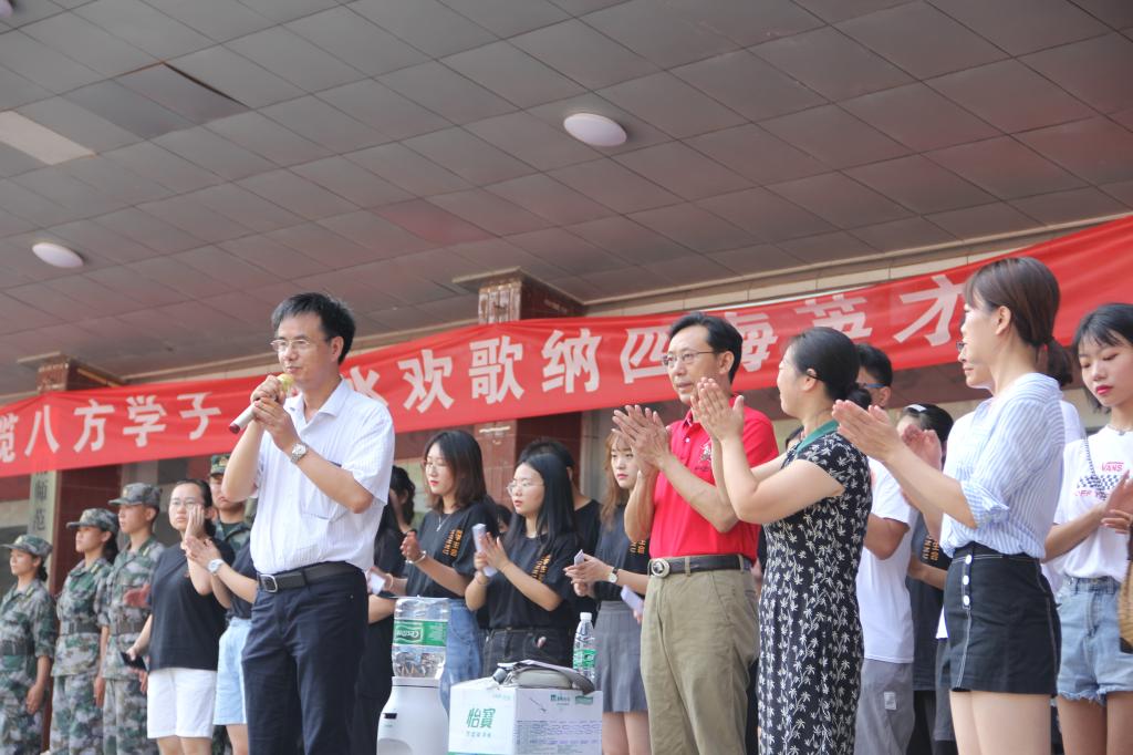 在军训场上,经理谢炳庚代表公司表达了对新生的问候,他期待新生能够在接下来的四年里努力拼博、不断成长;公司党委书记彭才华也向新生送去了节日的祝福,他嘱托同学们牢记青年使命、不忘求学初心。然后经理、书记与老师们一起给军训教官以及全体新生发放了月饼,送去了节日的问候。在场的全体师生共同高唱校歌,歌声中洋溢着学子们敬爱师长、爱校荣校的家国情怀,现场领导、老师与新生们合影留念。