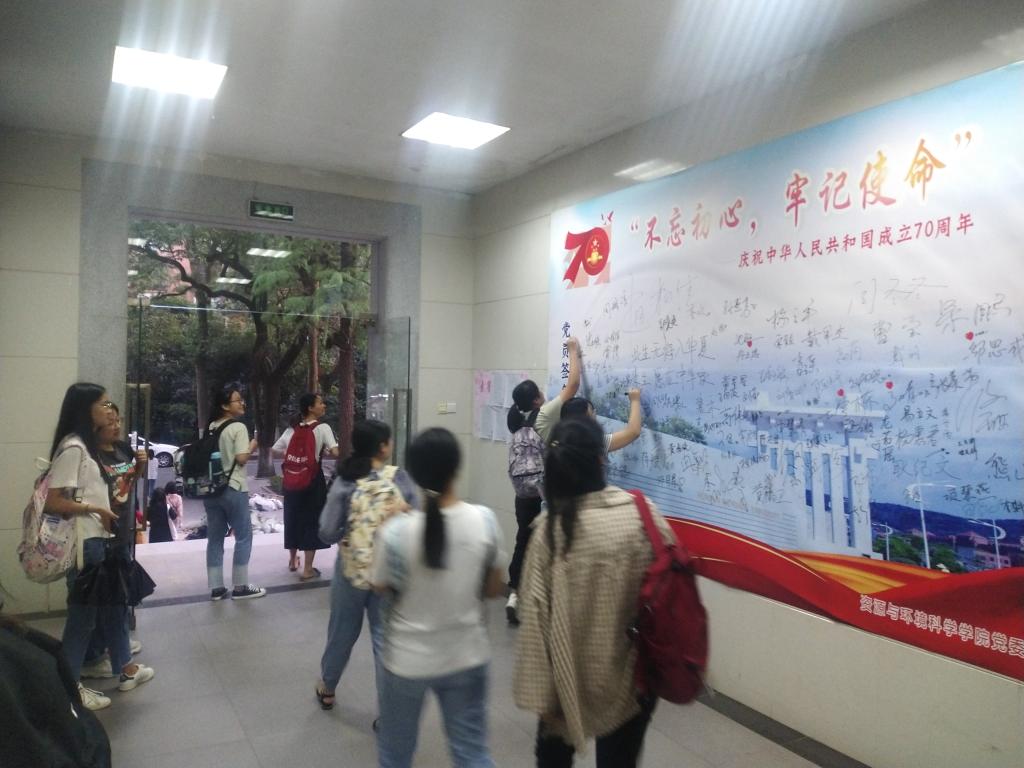 为庆祝中华人民共和国成立七十周年,9月30日,资源与环境科学公司党委和公司团委在公司大厅举办“不忘初心,牢记使命”党员签名活动和“我为祖国送祝愿”志愿活动。公司党委书记彭才华、党委副书记陈媛、副经理谭长银等参与此次活动。