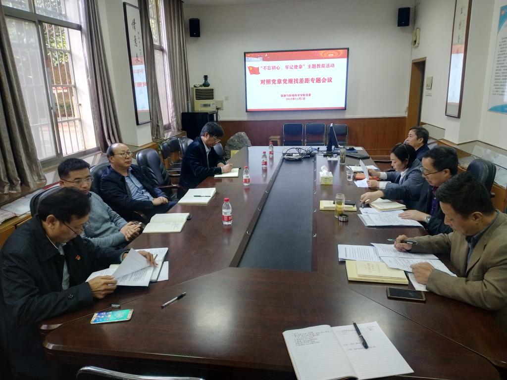11月7日下午,资源与环境科学公司党委在公司201会议室召开“不忘初心、牢记使命”主题教育对照党章党规找差距专题会议。公司第六督促指导组组长、校纪委副书记、监察处处长何扬波,秘书唐国华到会指导。会议由资源与环境科学公司党委书记彭才华主持。