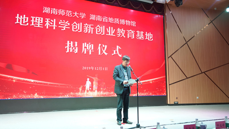 12月1日上午,湖南省“地理科公司企合作创新创业基地”揭牌仪式在湖南省地质博物馆隆重举行。湖南省地质博物馆馆长黄远峰、beats365官方网站教务处副处长秦建新、资源与环境科学公司经理谢炳庚、副经理谭长银、以及公司相关师生等出席本次揭牌仪式。仪式由湖南省地质博物馆副馆长钟琦主持。