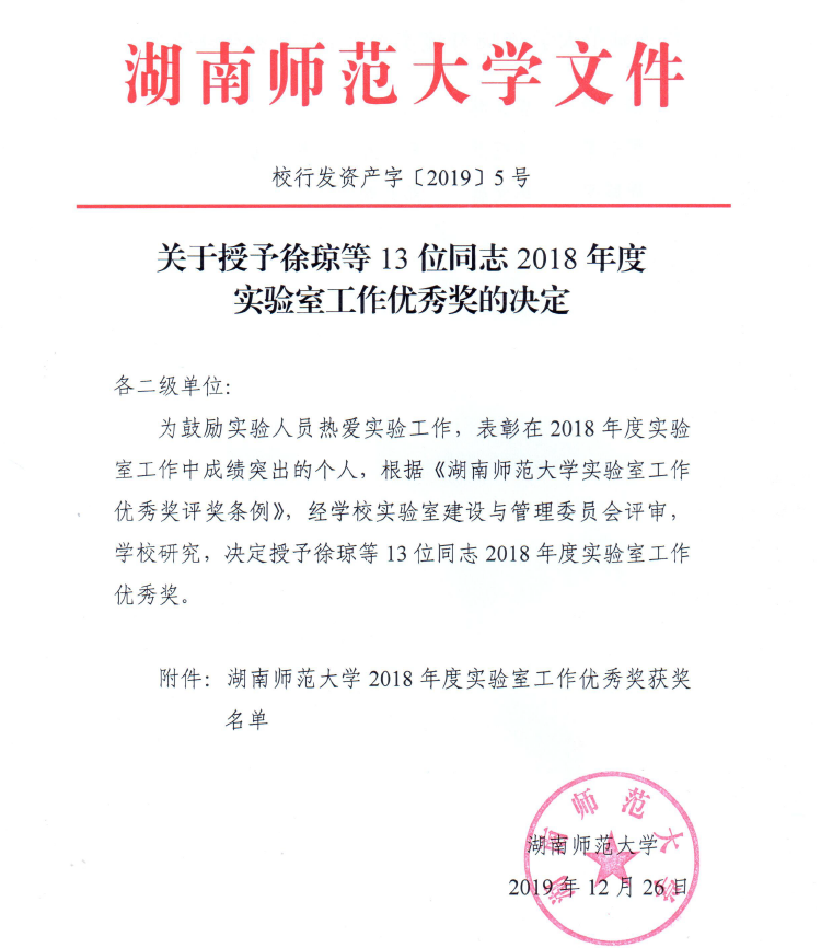 公司“资源环境实践教学中心”荣获2019年度实验室安全管理先进集体称号,公司王欣老师所负责的原子荧光形态一体机(1601238S)机组荣获2018年度大型仪器设备先进机组称号,周亮老师荣获2018年度实验室工作优秀奖。