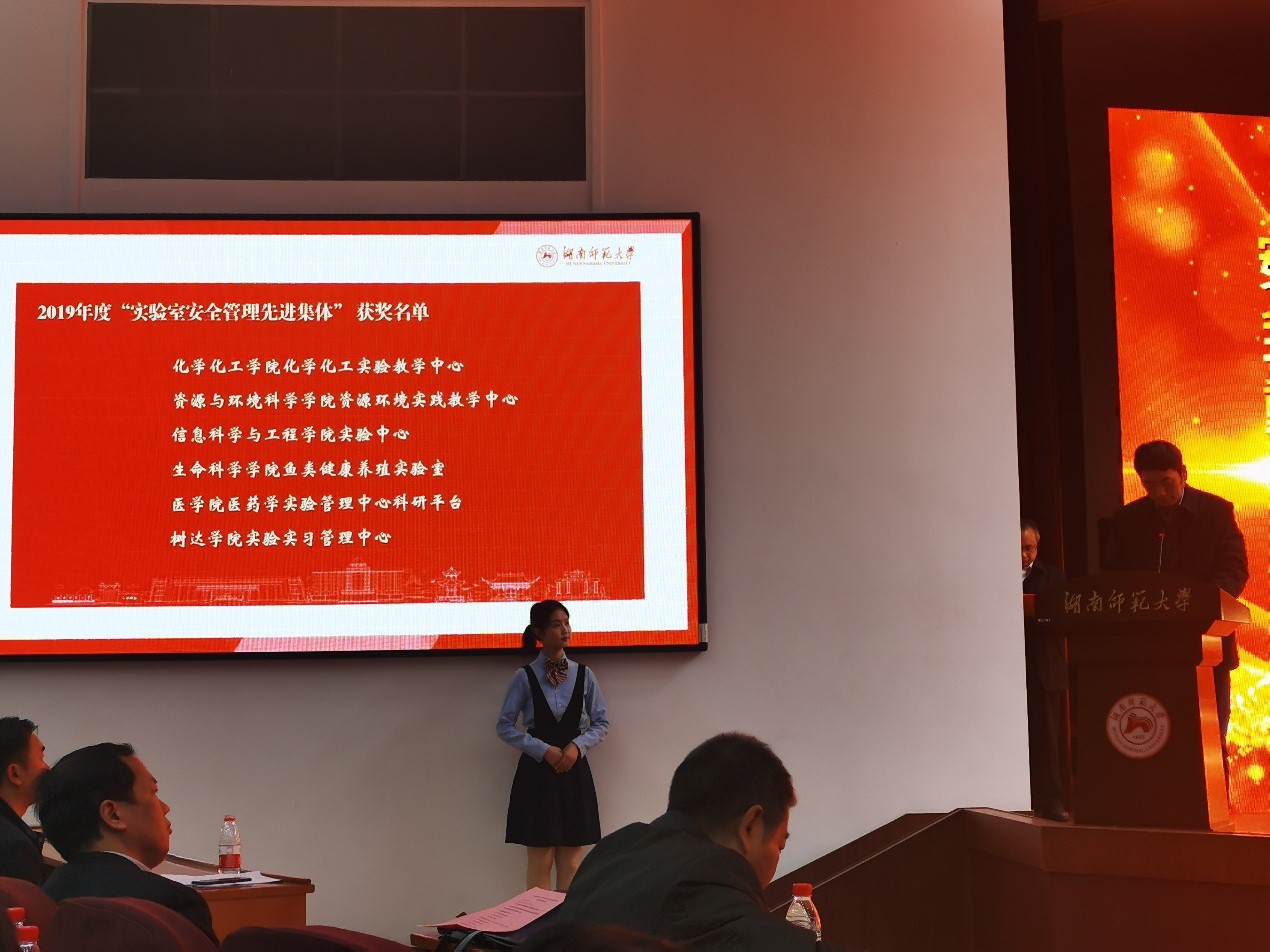 会议由欧阳尧副董事长主持,实验室与固定资产管理处向坚持处长向大会作2019年实验室安全及大型仪器管理工作报告;公司实验室安全领导小组组长向公司实验室安全领导小组组长递交实验室安全责任书;表彰2019年度“实验室安全管理先进集体”、2018年度“大型仪器设备考核先进机组”和“实验室工作优秀奖”。