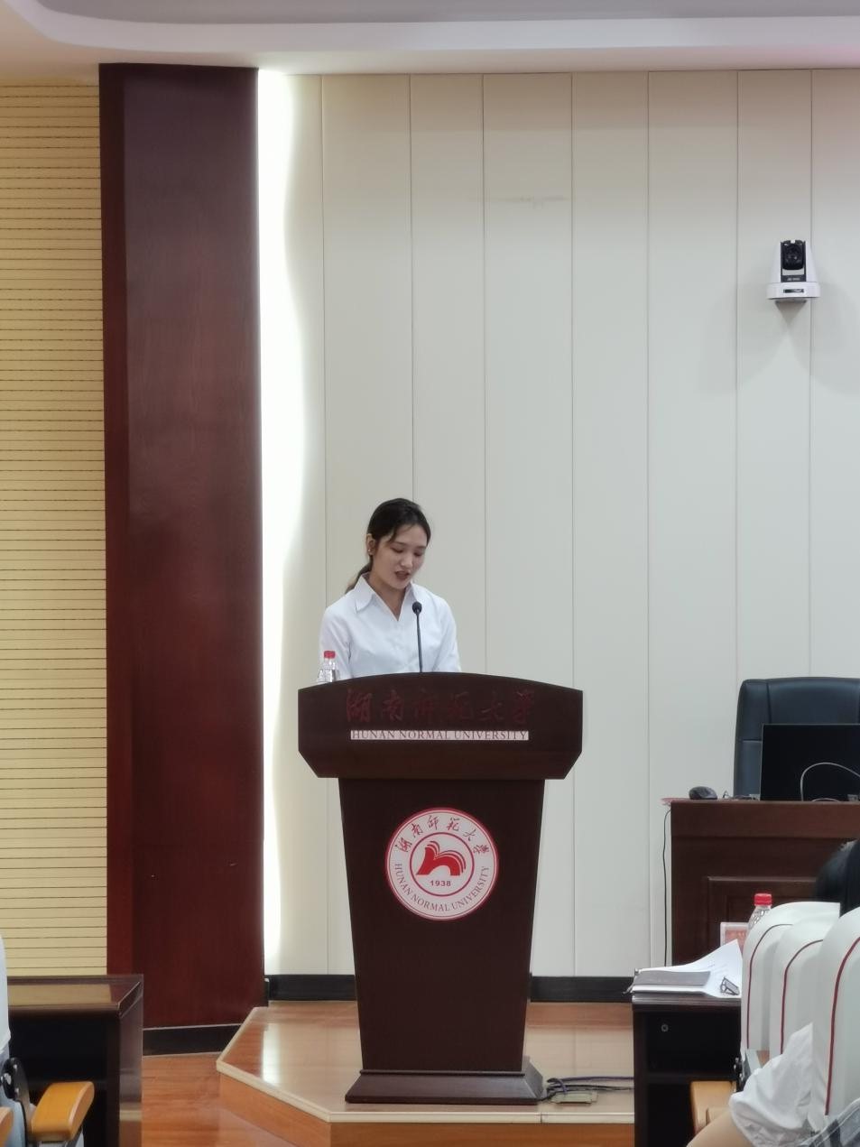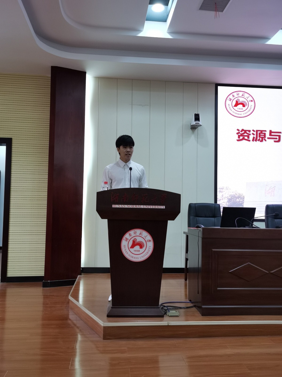 2020级学科教学专业廖洁玉作为新生代表发言,她表达了自己作为一名地理人的自豪感和对资环院深深的归属感,并表示会严格要求自己,广泛涉猎、博采众长、修身立德,争取来日为公司增添荣光。