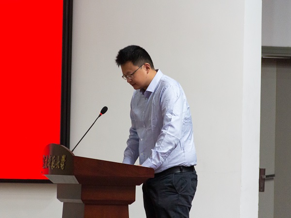 公司青年教师、beats365官方网站地学博物馆馆长、全国青年教师地质课程教学比赛一等奖获得者易立文作为教师代表发言,他结合自己的思考和人生体会,鼓励新生们争做立德明志的标杆,做求真创新的标杆。