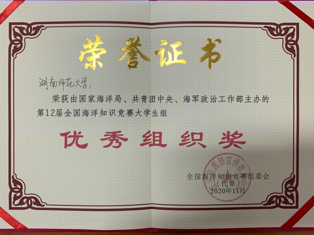 (通讯员 杨惠君 彭扬慧 )11月22日至11月24日,由国家海洋局、共青团中央、海军政治工作部主办,自然资源部宣传教育中心、海洋出版社有限公司、国家海洋局极地考察办公室、中国大洋事务管理局、海南广播电视总台承办的第12届全国海洋知识竞赛老员工组总决赛在海南省海口市举行。公司2018地理科学专业彭扬慧同学获全国一等奖,公司获“优秀组织奖”。