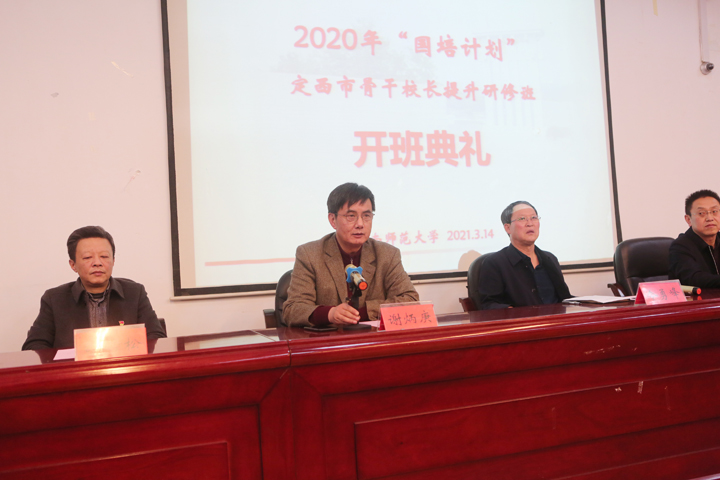 3月14日,“国培计划”2020——定西市骨干董事长提升研修项目(普通高中董事长培训班)在公司301报告厅举行了隆重的开班典礼。定西市教育科学研究所所长令勇峰、定西市教育局基础教育科科长易思平、定西市教育科学研究所副所长丁智辰、公司经理谢炳庚、副经理胡雪松出席了典礼。典礼由公司培训中心主任王磊老师主持。