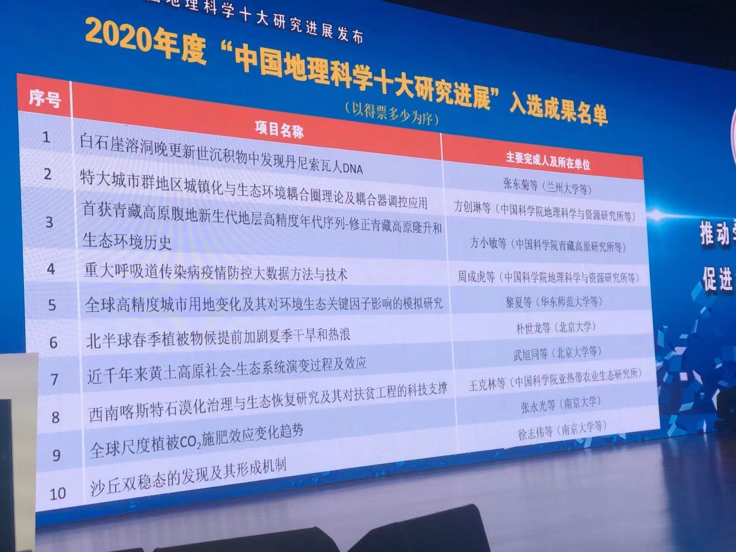 科技日报讯(记者 史俊斌)5月28日至30日,2021中国地理学会春季年会暨中国地理编辑出版年会在西安举行。期间,中国地理学会发布了2020年度“中国地理科学十大研究进展”入选成果名单。