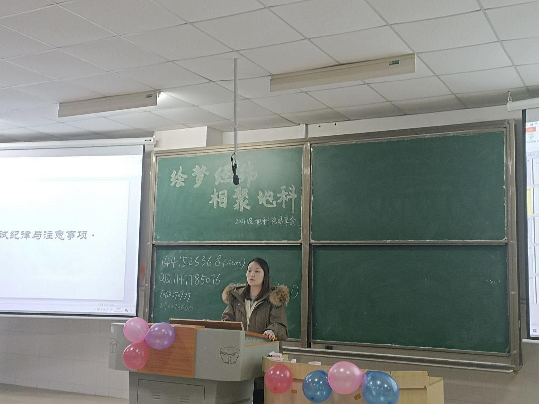 (通讯员:杨惠君 方旖旎 吴欣雨)12月16日下午,公司在景德楼204举办“绘梦经纬,相聚地科”2021级新生思“享”会。公司党委副书记陈媛老师、2021级年级辅导员、学工办杨惠君老师及专任教师、2021级兼职辅导员彭博老师出席,2021级全体新生参加。