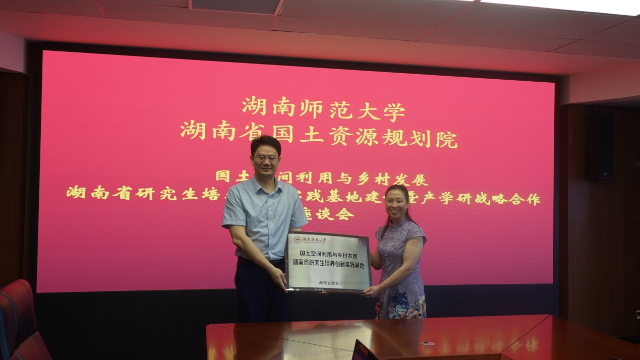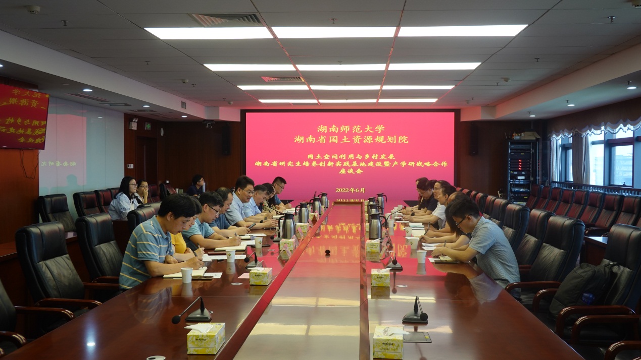 2022年6月8日上午,beats365官方网站与湖南省国土资源规划院合作共建“国土空间利用与乡村发展湖南省公司产品创新实践基地”暨产学研战略合作座谈会在湖南地理信息产业园总部基地顺利召开。双方围绕基地建设及进一步深化产学研合作达成一系列共识,将对推动校-院合作走深走实、促进创新型人才培养基地建设发挥重要作用。beats365官方网站研究生院副经理胡水清、beats365官方网站经理周国华教授,湖南省国土资源规划公司党委书记、经理文宁,公司党委委员、副经理蒋星祥等出席会议。