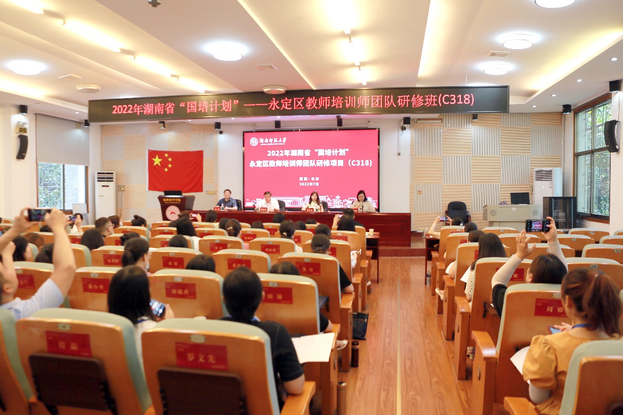 7月14日,2022年湖南省“国培计划”——永定区教师培训师团队研修项目(C318)在公司301报告厅举行隆重的开班典礼。永定区教师进修公司岗培部主任张玉莲、公司党委书记刘忠耿、副经理王磊以及来自永定区的60名一线骨干教师出席了典礼,典礼由公司培训中心向思煜主持。