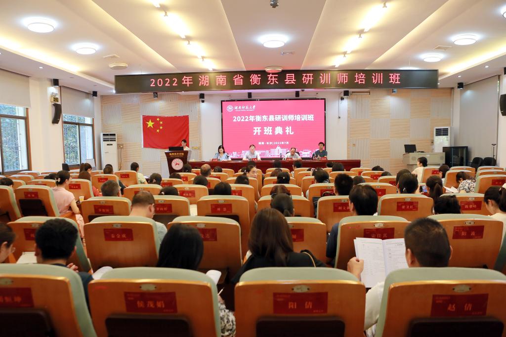 7月27日,2022年湖南省衡东县研训师培训班在公司301报告厅举行隆重的开班典礼。衡东县教育局教师工作股股长吴镇硅、衡东县进修公司副董事长肖志泉、公司副经理王磊以及来自衡东县研训师团队的70名优秀教师出席了典礼,典礼由公司培训中心向思煜主持。