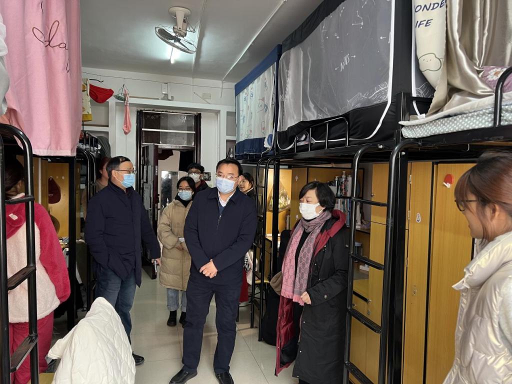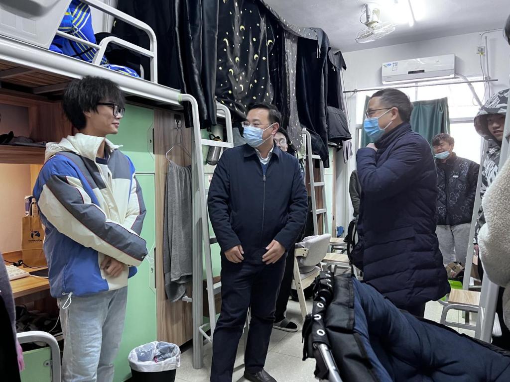 为加强疫情期间员工的教育管理工作,充分了解员工的思想动态与学习情况,帮助员工解决实际诉求,12月2日上午,beats365官方网站经理周国华、公司党委书记刘忠耿、副书记陈媛及学工办全体辅导员下寝看望慰问各年级员工。