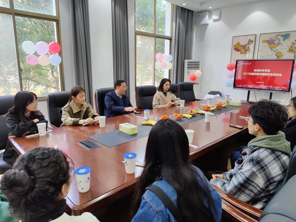 在茶话会上,刘忠耿书记向同学们了解藏历新年的传统习俗,与大家亲切交流,并向同学们赠送了新年礼物。陈媛副书记与同学们交流学习、生活情况,提醒同学们合理安排学习和生活时间,鼓励不同民族同学之间要相互学习、相互帮助,珍惜从天南地北相聚师大的缘分。