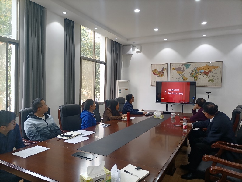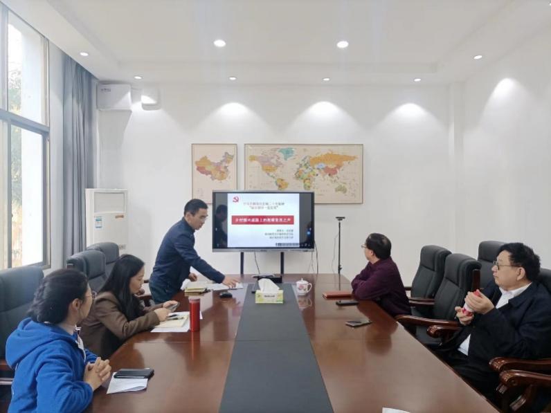 刘春腊以《乡村振兴道路上的教师党员之声》为题,首先带领全体党员学习了党的二十大报告的相关论述和习近平总书记有关讲话精神,接着从区域协调发展与乡村振兴、共同富裕与乡村振兴的辩证关系切入,论及高校应服务于国家发展战略的重要职能,最后着重阐释了高校教师,特别是党员教师应立足工作岗位主动扛起社会政治责任在乡村振兴上有所作为,必能大有作为。他结合本系学科专业与乡村发展联系度较高的特点,分析了本系党员教师可堪担当乡村振兴社会责任的具体路径和主要步骤。他认为,教师应走出书斋,深入社会、深入乡村,汇集丰富多彩的鲜活社会材料致力于专业人才培养,以乡村振兴中的具体问题为课题探寻破解之道。