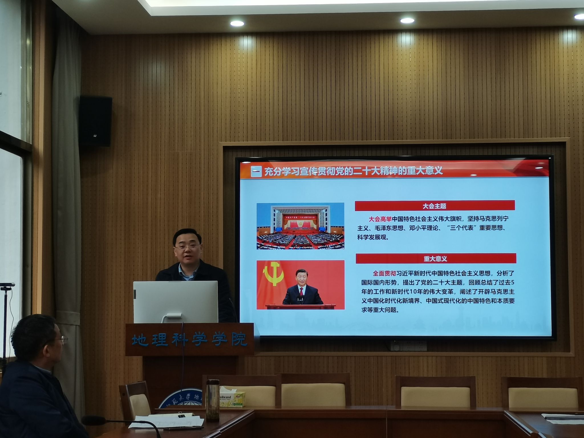 刘忠耿从党的二十大基本情况、党的二十大精神的主要内涵以及以实际行动践行党的二十大净胜等维度宣讲了党的二十大精神,要求在场教职员工认真领悟和贯彻党的二十大精神,切实提高履职能力,管理好、团结好、服务好全体教职工,为公司“双一流”建设汇聚起磅礴力量。