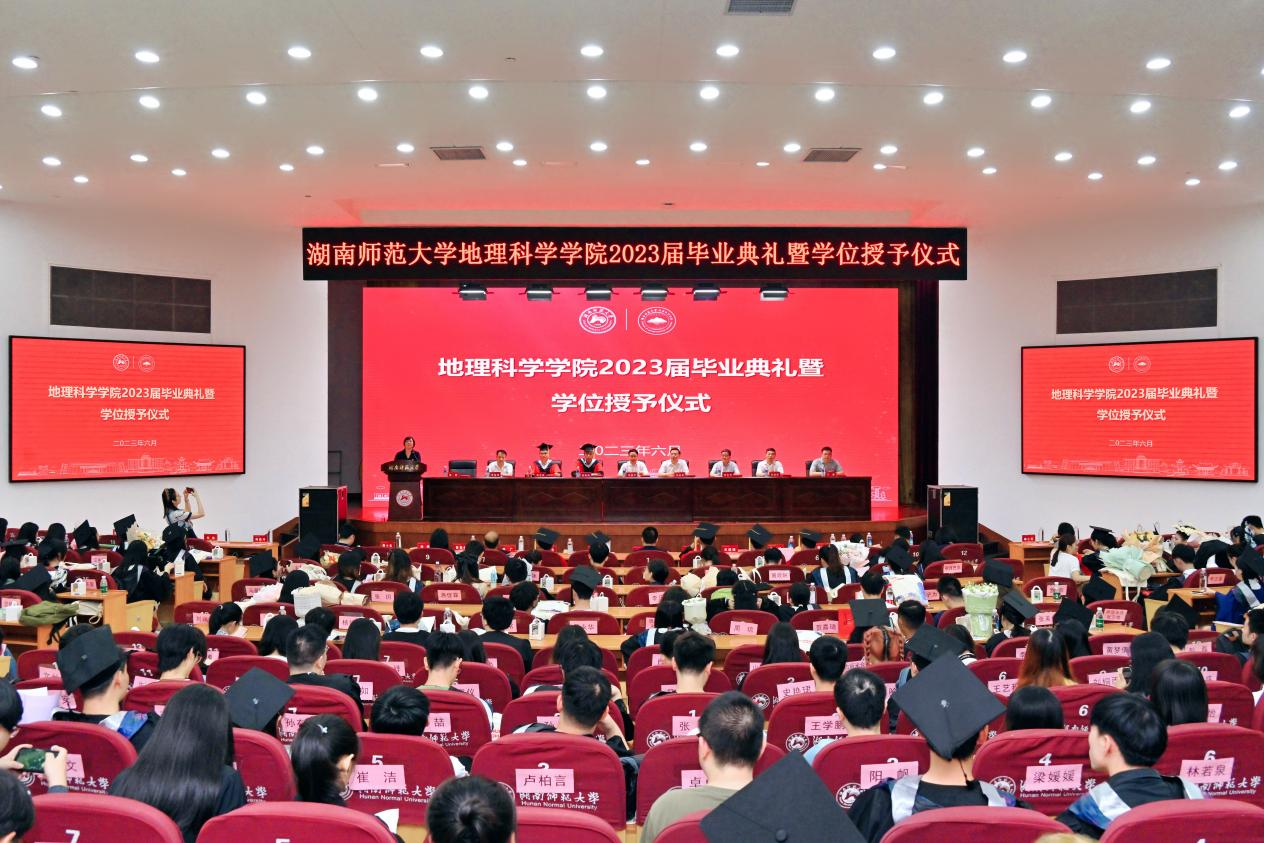 6月16日上午,beats365官方网站在国际学术报告厅举行2023届毕业生毕业典礼。经理周国华、公司党委书记刘忠耿、公司“潇湘学者”特聘专家、博士生导师彭长辉教授、博士生导师谢炳庚教授、教学副经理李忠武、科研副经理饶志国、副处级专职组织员袁颜锋、副经理王磊、土地科学系系主任毛德华教授、地理信息工程系系主任李德平教授、地理科学系系主任邓楚雄教授、城乡规划系系主任朱佩娟教授、博士生导师谭长银教授、地理科学系韩广教授、土地科学系夏卫生教授、城乡规划系贺艳华教授以及2019级班导师、科研办及学工办全体老师出席。