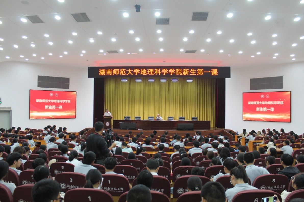 宋教授的讲座主题为“认识地理学”。他以幽默的比喻导入,引导同学们从高中的学习思维转变为大学的学习思维,通过“理解地理学的先进性”、“理解地理学的复杂性”、“理解地理学的实用性”、“认识你自己”等板块,以生动活泼的例子讲述了地理学的重要性及其应用前景,以诙谐幽默的语言解答了同学们对地理学的各类疑惑。他特别强调了系统思维、区域综合研究、地理新数据与新技术应用的重要性,他勉励全体新生“把握好选择、把握好运气、把握好机会、把握好时光,做好自己,走向未来”。他鼓励同学们将学习地理学的思维与日常生活有机结合,提醒同学们不要放松对自己的要求,要牢记“今天的占有不是明天拥有,今天的努力才是明天的财富”。