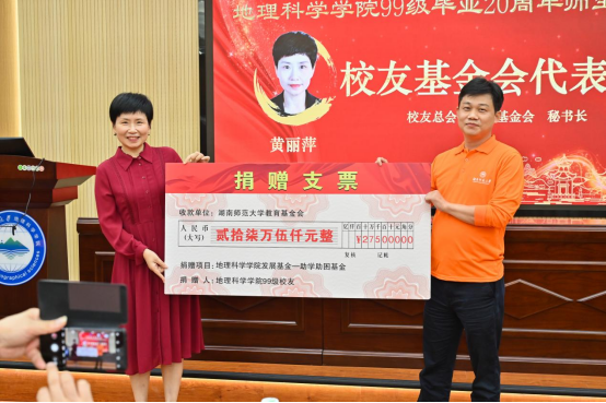 员工总会、教育基金会黄丽萍秘书长代表公司教育发展基金会接受捐赠,代表员工总会对99级员工返校表示热烈的欢迎,并向99级员工关心支持公司发展表示衷心感谢,向员工们表达了良好的祝愿。