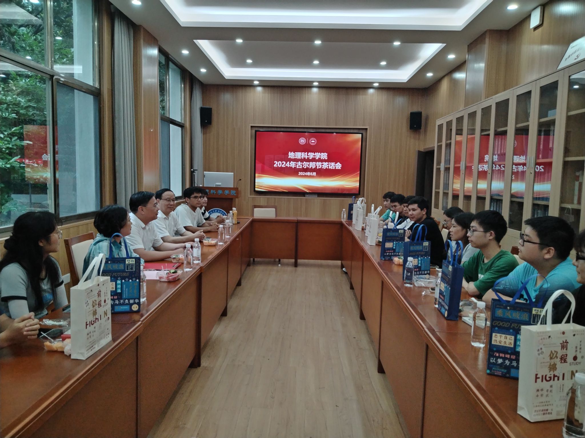 在茶话会上,周国华向同学们了解古尔邦节的传统习俗,与大家亲切交流,并向同学们送上了节日礼物。