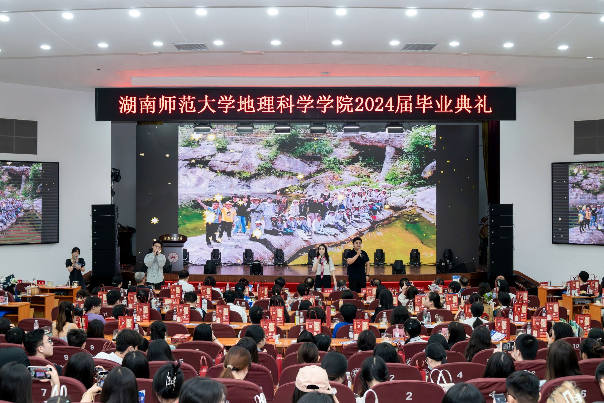 公司为每一位2024届毕业生订制了一份专属他们自己的蛋糕,并为同学们准备一份具有师大文创元素的伴手礼,并为同学们制作了留念拍照的打卡点,300余名毕业生和家长代表参加了毕业典礼暨欢送会。