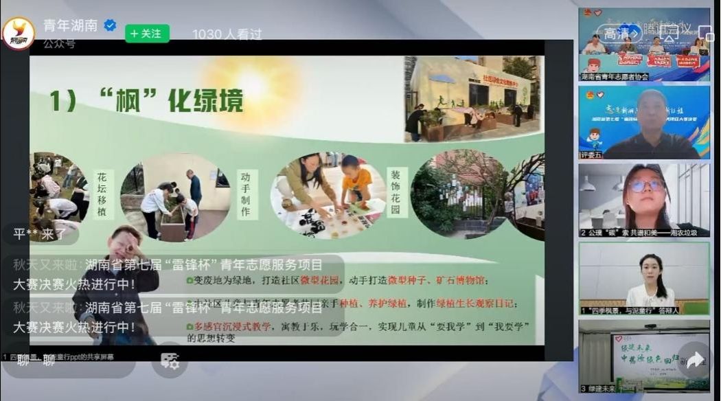 (通讯员 盘悦韵)11月14日,由湖南共青团联合18家单位举办的“志愿新湖南·奋进新征程”湖南省第七届“雷锋杯”青年志愿服务项目大赛决赛公开答辩在“青年湖南”视频号展开,公司“四季枫景,与泥童行”自然教育与生态保护计划志愿服务项目在众多参赛项目中脱颖而出,荣获金奖。