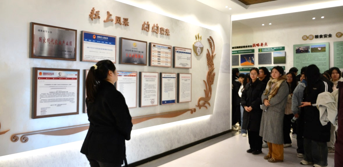 “粮食是民生之源,是国之根本”。师生们来到宁乡市粮食发展中心参观学习。宁乡是全国粮食生产大县,耕种文化源远流长,从公元前两三千年前就已经有古人在宁乡种植谷物。讲解员详细介绍了宁乡市农业发展概况、耕种文化、乡村农业产业融合情况,老师们引导员工要思考区域农作物种植条件、产量和质量提升及品牌打造等问题,要结合案例理解产业融合业态及其与乡村振兴的关系,并且要不断加深“将饭碗牢牢掌握在自己手里”的理念认知。