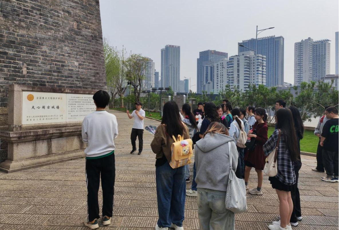4月9日上午,师生们深入天心阁片区、历史文化街区、老旧社区活化带三大实践场所展开实地调研。步行至天心阁前,朱老师向城规班同学介绍了长沙市历史步道的规划设计思想,现场感受长沙“山水洲城”景观意象与城市记忆,使同学们在空间认知中深化对历史文化遗产保护、地域特色场景营造的理解。