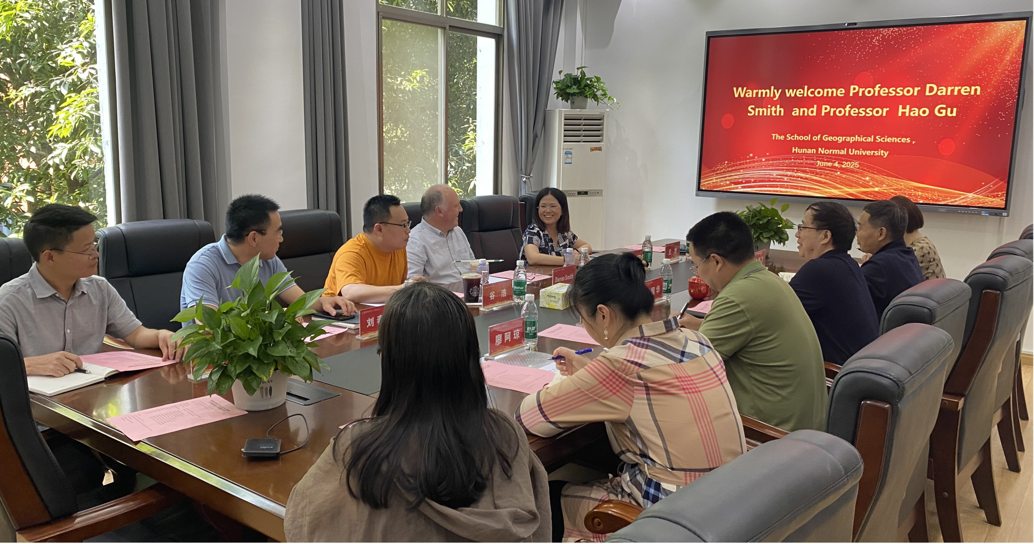 (供稿 王华)6月4日下午,英国社会科公司院士、拉夫堡大学Darren Smith教授受邀来公司交流访问。公司经理周国华教授、副经理饶志国教授、副经理李忠武教授、国际交流合作处交流科科长廖阿琼、湖南大学公共管理公司谷浩副教授以及公司教师代表参加了座谈交流会。座谈交流会由经理周国华教授主持。