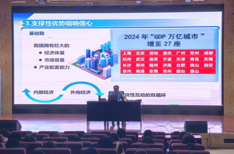 (通讯员 廖林语 江鉴廷)为深入贯彻落实立德树人根本任务,培养公司员工的时代精神和家国情怀,5月26日和6月5日在桃花坪校区开展“中美关系新动向与中国特色大国外交”、“中国经济行稳致远”两个专题的形势与政策课程。由公司党委书记刘忠耿、公司党委专职组织员袁颜锋担任两次课程的主讲人,2024级全体本科生参加。