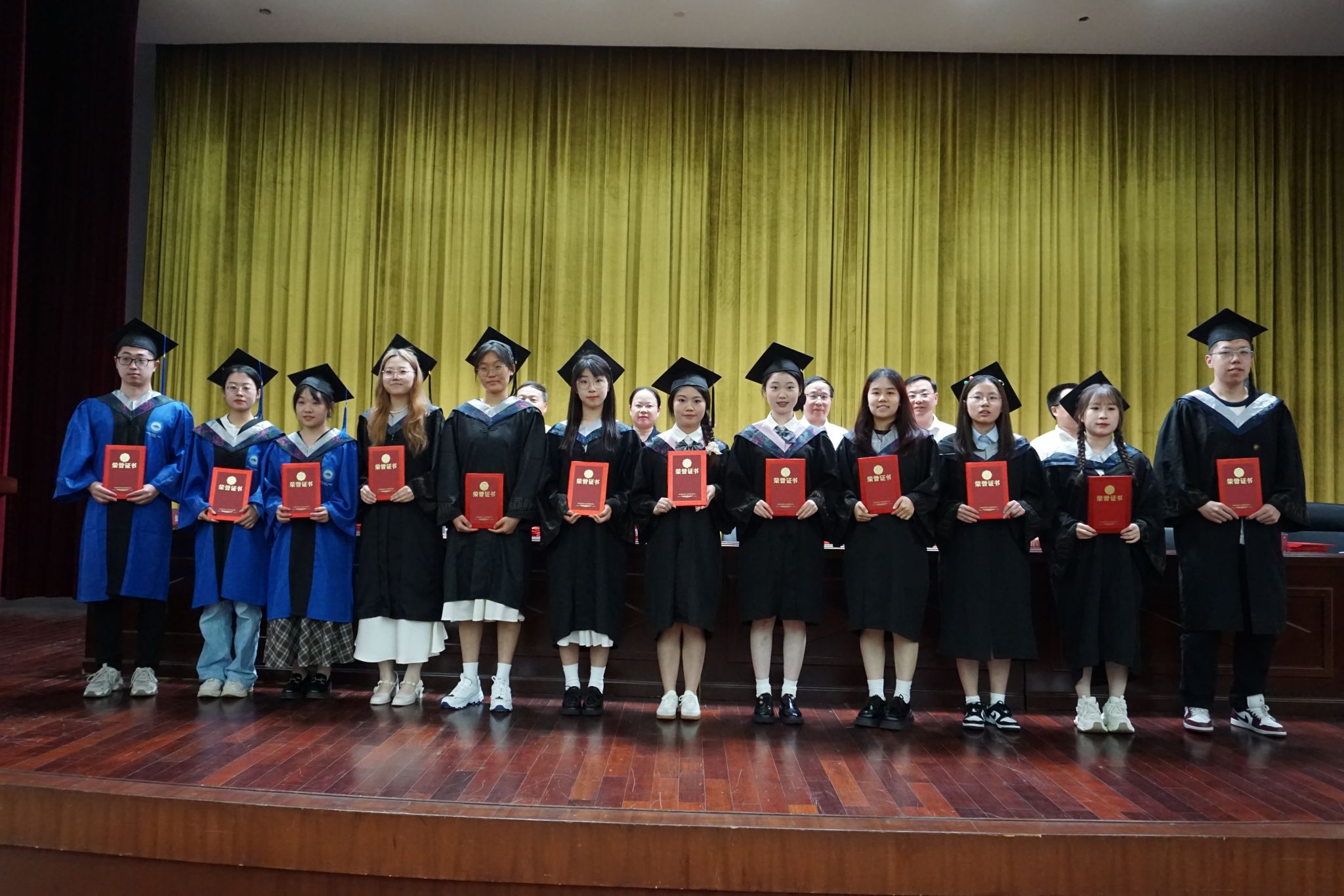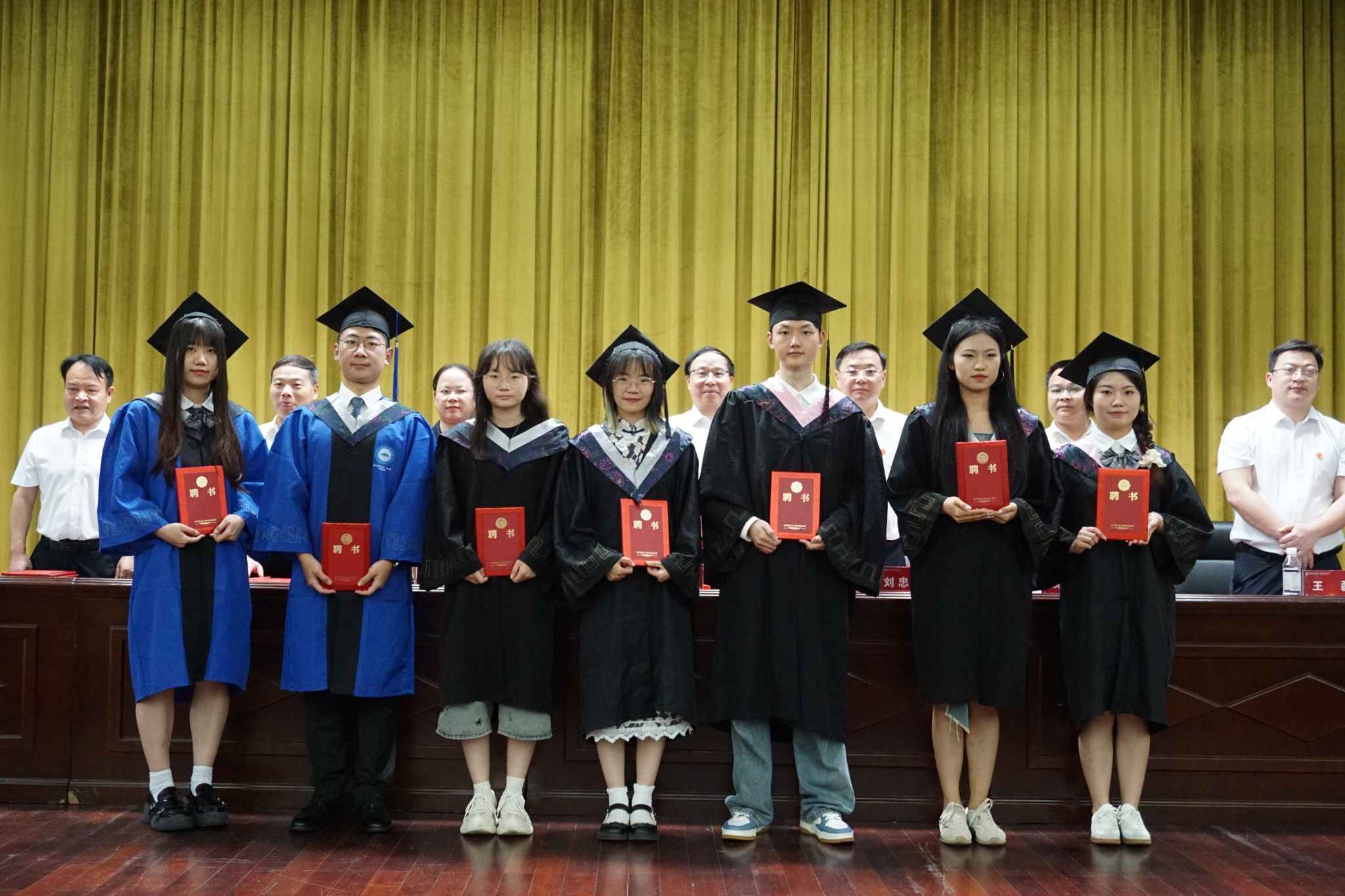 彭渤、毛德华等六位教授为研究生、本科生代表颁发毕业证书并授予学位。