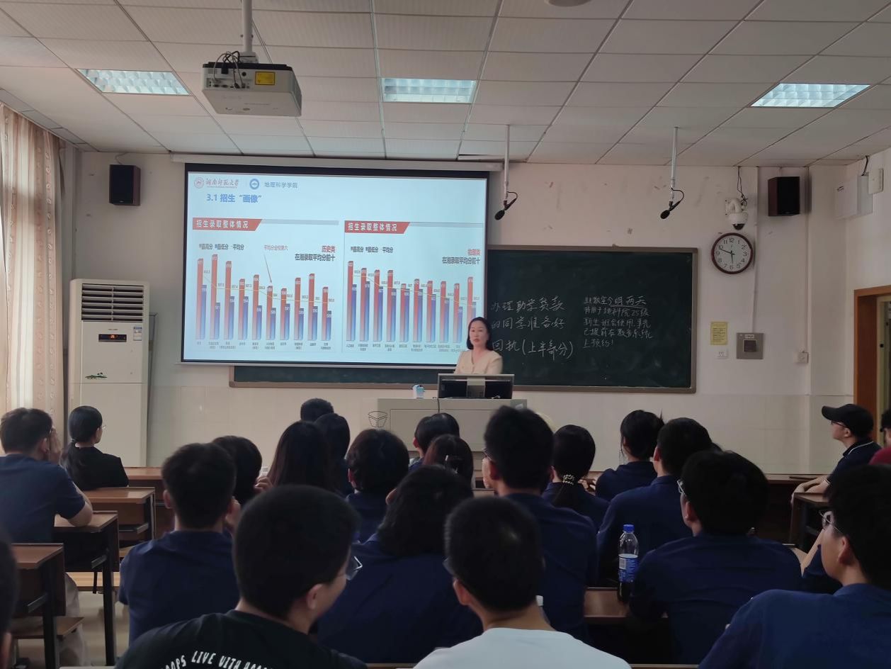 城乡规划系系主任朱佩娟介绍了人文地理与城乡规划专业的招生录取情况,肯定了同学们夯实的知识基础,鼓励员工持之以恒,成长为有担当的“城规学子”。