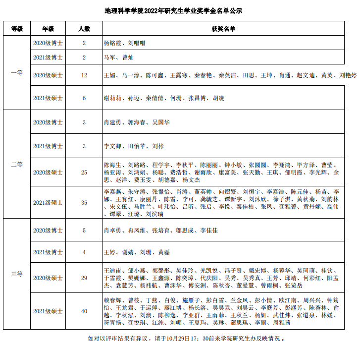 经本人申请、学位点推荐、公司评审委员会评审,公司2022年研究生一等学业奖学金推荐名单及二、三等学业奖学金评审通过名单如下,现予公示,请有异议者于10月29日下午5点前到公司研究生办反映。