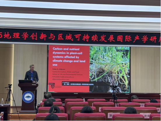 主题论坛上半场由周晓路教授主持。北京林业大学余新晓教授作题为“水土保持碳汇过程与效应”的报告,系统阐述水土保持碳汇在增强陆地生态系统碳汇功能中的作用、机制与生态及经济效应。澳大利亚悉尼大学 Feike A. Dijkstra 教授围绕“Carbon and nutrient dynamics in plant-soil systems affected by climate change and land use”展开论述,从植物—土壤系统的角度探讨了气候变化与土地利用方式变迁对碳与养分循环的机理及深刻影响。新加坡南洋理工大学王先锋教授以“China's Lead Pollution History: Insights from a 60-Year Modern Coral Record”为题,揭示了珊瑚记录铅污染的机理及中国铅污染历史变化规律。