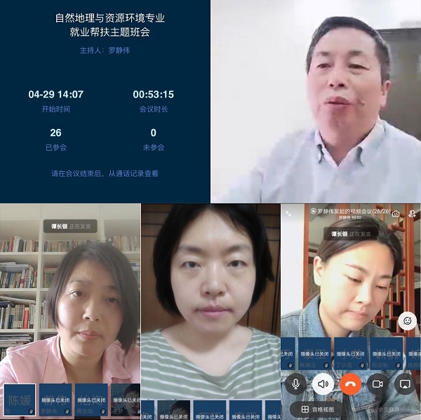 同时,为精准帮扶公司就业困难员工群体,公司于4月29日下午2点,通过“钉钉”网络平台,组织2016级自然地理与资源环境专业全体同学,开展了“就业帮扶”主题班会。公司分管教学副经理谭长银、党委副书记陈媛、班导师王欣、2016级辅导员罗静伟以及地资班22名全体员工参加会议。