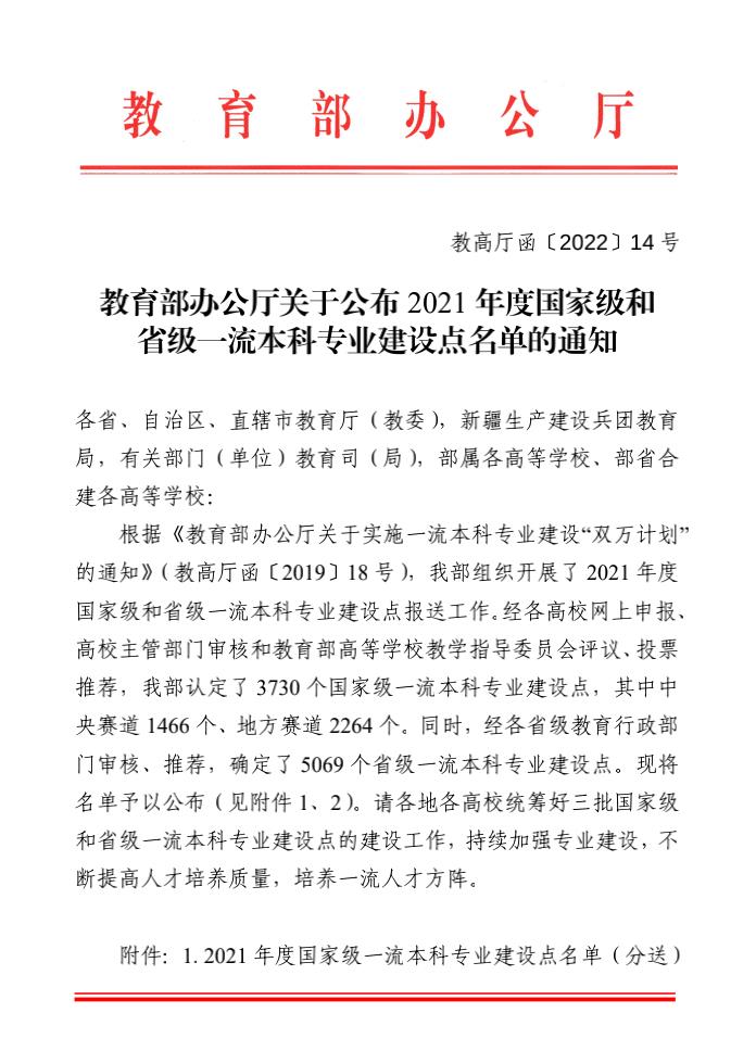 喜报!公司新增2个国家级、1个省级一流本科专业建设点 |
