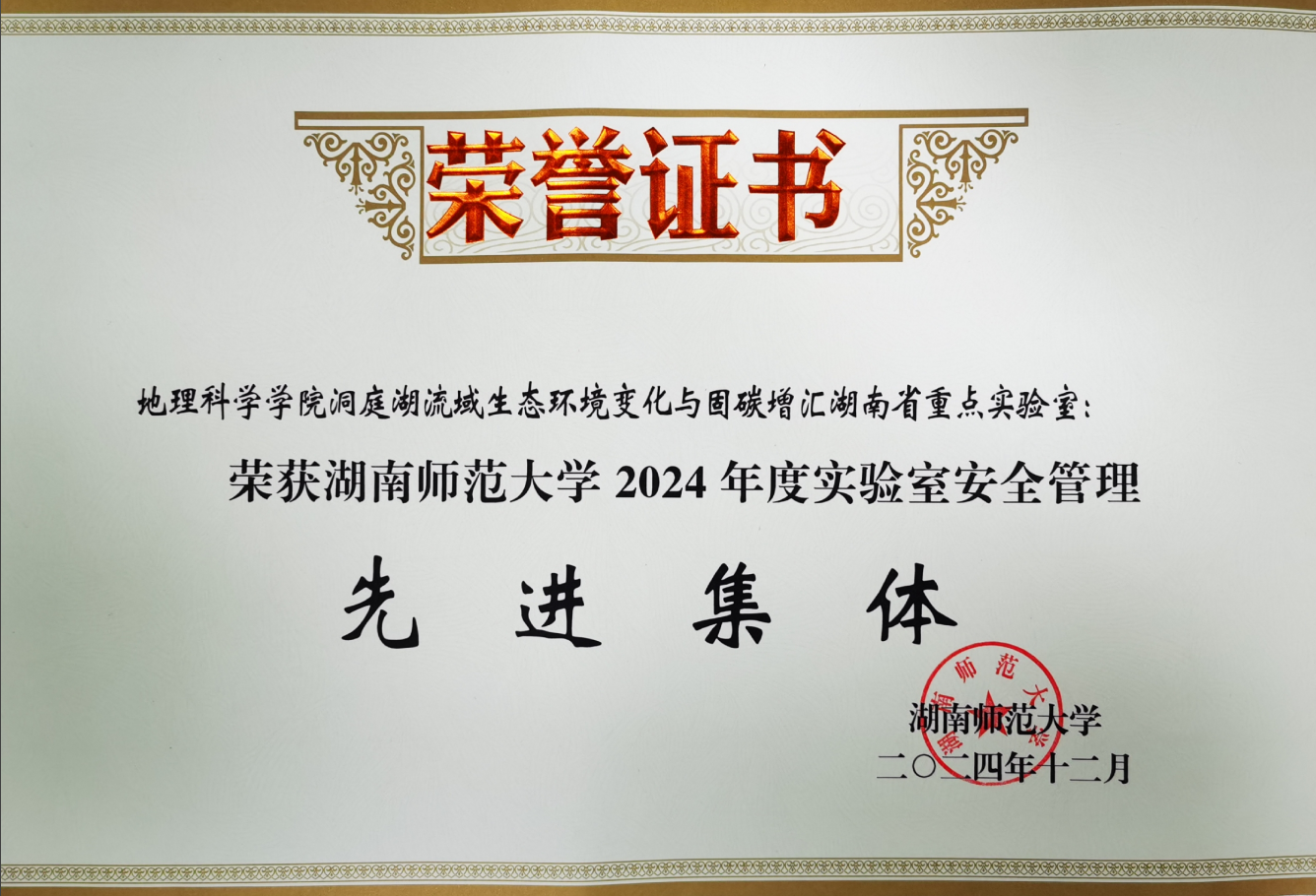 公司洞庭湖流域生态环境变化与固碳增汇湖南省重点实验室荣获beats365官方网站2024年实验室安全管理先进集体 |
